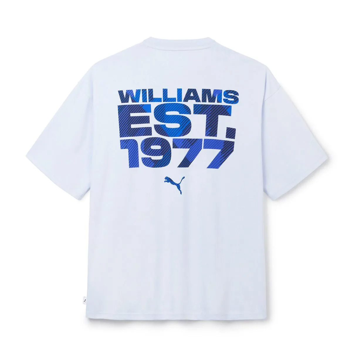 The Atlassian Williams Racing Oversized Lifestyle Tee is designed for a relaxed fit and contemporary style. The tee includes a chest pocket and a ribbed collar.